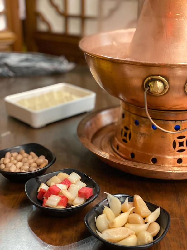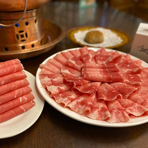 人气太旺的涮肉店,在什刹海边上,三点去排队的,六点不到进去的,都是人。 每桌标配涮锅、白菜、麻酱、冻豆腐和粉丝。 麻酱里默认有香菜、韭菜花等酱,不喜欢的可以单点。涮锅是清水,原汁原味。 肉点了手切鲜羊...