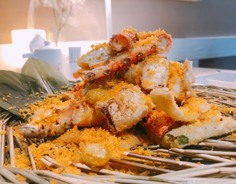 服务很好 「帝王蟹」单例选择了保守的蒜蓉口味 天妇罗打底 蟹肉很棒 口味满意 「三文鱼+北极贝...