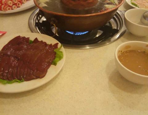 本地人带着去的。虽然店面很不起眼,但绝对是涮肉店中的老字号,尤其羊羯子的味道真的很好很好。看到这个很有时代感的铜锅,就立即勾起我的食欲。 室外夏日炎炎,室内凉风阵阵,来一口久违的北冰洋橙汁,爽!一口是香喷喷的羊羯子,一口是羊肉蒸饺。