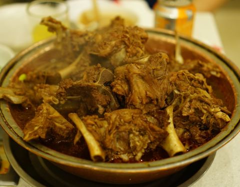 看到这个很有时代感的铜锅,就立即勾起我的食欲。一口是香喷喷的羊羯子,一口是羊肉蒸饺。本地人带着去的