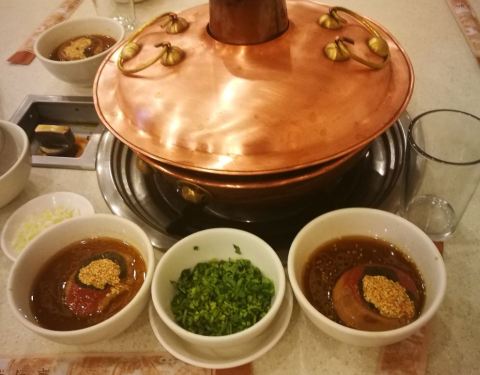 - 看到这个很有时代感的铜锅,就立即勾起我的食欲。一口是香喷喷的羊羯子,一口是羊肉蒸饺。本地人带着去的