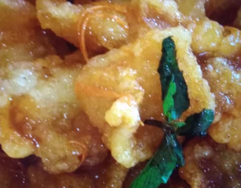 店面不算小,但是人很多,所以显得有点乱哄哄的。饭后甜品点必点大鸭梨,这个是炸出来的,很焦酥,其实就跟麻团差不多,就是做的跟梨型似的,4元一个,趁热吃非常香。