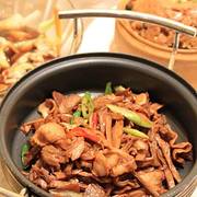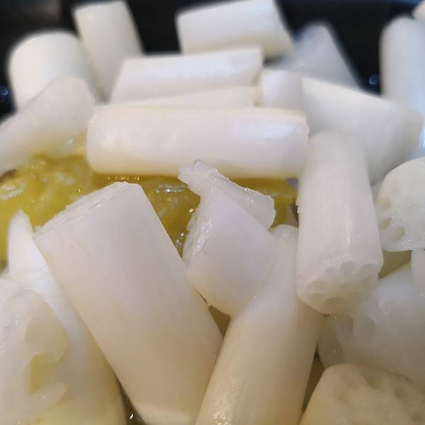 干锅蕲春野笋干取自蕲竹,是蕲春的四宝之一,貌似平凡的笋干,却是通过去壳、蒸煮、压片、烘干、整形等诸多工艺,半透明的色泽,肥厚的肉质,微辣的口感,固然最宜配饭,但经我个人尝试,放凉了后当做零食一根根的享用,味道也是超赞!