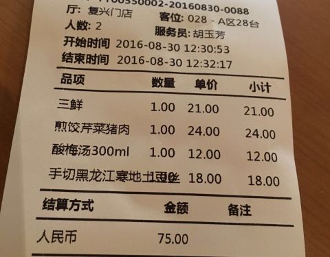 舒服着不如倒着,好吃的不如饺子。这家的饺子是现包现煮,现煎,味道不错。凉菜推荐土豆丝,爽口开胃。吃完饺子来碗汤,顺气。自制的酸梅汤放了一片柠檬,给个赞吧。呵呵