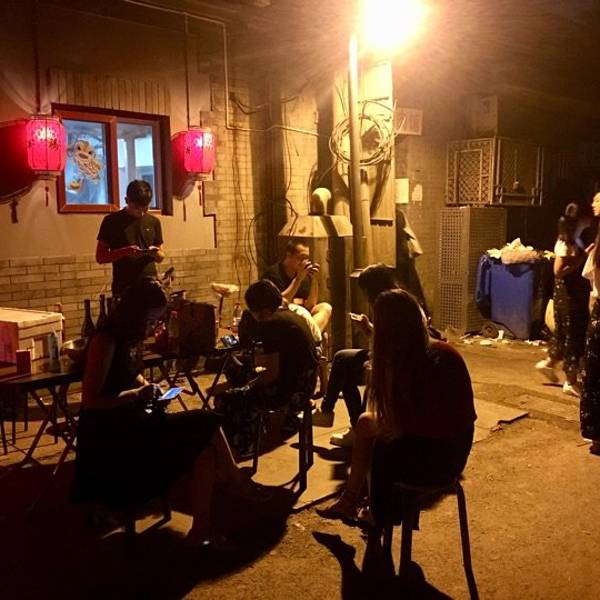 出了故宫是三点多钟,中午我们也没有吃饭,索性直接去附近的大槐树烤肉吧,还是我师父推荐的,大众点评上了解了一下也是必吃之一啊。离故宫大概三站地的距离,决定走过去,因为等公交还是打车感觉都很费劲,因为从故宫出来的人也是超级多。我们一边聊天一边走,也没多久就到了。结果又是一个万万没想到,居然这个点去吃饭需要排队,不愧是我师父推荐的,火爆程度真的可想而知。等了大概半个小时,我们吃上了这个传说中烤肉。门脸极为不显眼,而且内部环境也是脏乱差给了沾料和辣椒粉,孜然粉!不知道怎么吃,师父告诉我把孜然和辣椒粉倒进那个酸甜的沾料里沾着吃!然后旁边桌貌似也是第一次来,完全是用眼瞄着我们的操作然后操作的😂😂😂这种小炉的烤肉第一次,牛肉和羊肉的味道还不错,腌的比较入味,蔬菜什么的都是原味的。都推荐炸馒头片好吃,个人觉得一般,飞哥分析说可能是吃不饱所以用馒头片凑😂😂😂怎么说呢,单看价格很便宜,牛肉也就12一盘吧,但是量是真的少,牛肉我们点了六盘,最后飞哥还点了一份酱油炒饭才吃饱😅😅之前没有提前定回程的火车票,吃完饭打算就回天津了,直接坐了地铁去北京南站,可是在地铁上我发现最早一班能买到票的城际要八点多,而现在我们才刚六点多,还有两个小时的时间。先在手机上订好了八点多的车票,在地铁上又下来坐的反方向去了南锣鼓巷!