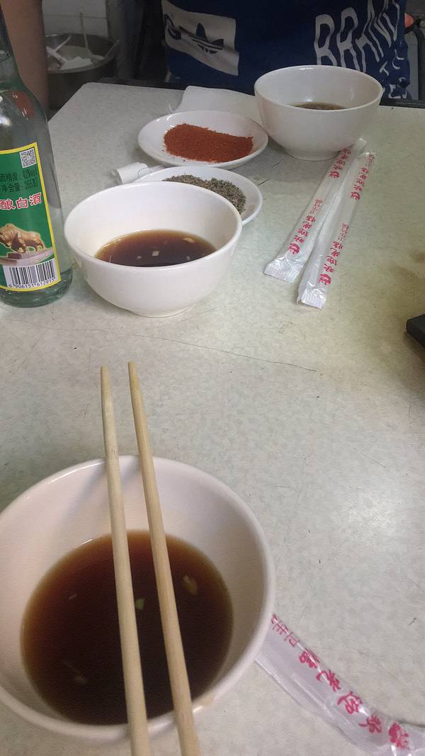 - 每人一碗它们家的独家蘸料,味道是咸中带甜,又有微微的酸