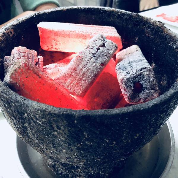 大槐树烤肉是老北京炙子烤肉,当很多烤肉店也打着“老北京”的旗号,却搬进了高大上的shoppingmall,开始用上电用上铁板等新式的烤肉工具时,大槐树依然留在胡同、保持着苍蝇馆子一贯的随意嘈杂,用的依然是炭火和传统工具“炙子”,当你看到他们家的锅,半圆的炉底放上炭火,再加上刷上油的圆形镂空铁条盖封住——这种业已陌生的工具,你就会不得不相信,这大概是很古老的存在了。