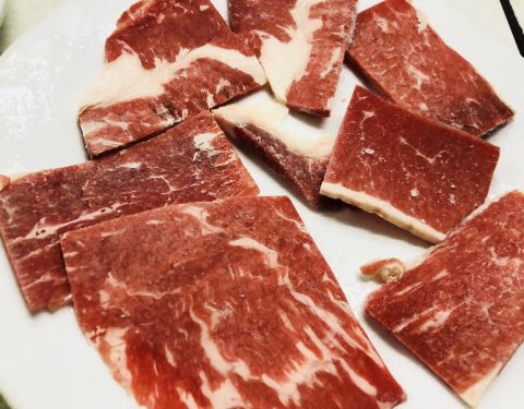 - 回头客都会有固定的搭配,若是第一次来,老板会推荐你点菜单上的前四道菜:精品肥牛、牛肉、猪五花和牛舌金骆驼