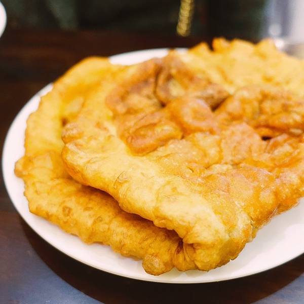 说说味道,第一口下去,没见馅儿,噗!这个馅儿,就是香气很重,第一口确实是需要回味、接受一会儿,不过吃着吃着就习惯了,也挺不错的!然后还有一点就是,它的后劲儿也有点大(打个嗝儿~)(糖油饼)这个是我最喜欢的油饼,特地点了甜的!油饼和油条的口感是差不多的,外酥里嫩的,就是形状不一样,甜的加了红糖,配豆浆也是无敌好吃的!(有点怂,还是没有去尝试豆汁儿)