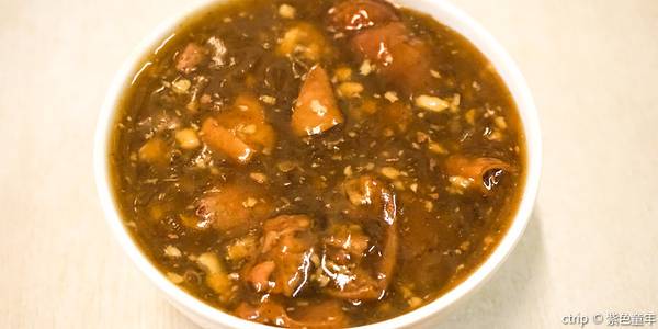 (炒肝)是北京地区的一个传统名小吃。汤汁油亮粘稠,里头是猪肝和猪大肠,还有清晰可见的蒜泥粒儿。味道很浓郁,说实话,早晨吃这个少许有一些些的重口味,不过口味还是不错的,就是后劲儿的味道有点大,噗你懂...(炒肝)是北京地区的一个传统名小吃。汤汁油亮粘稠,里头是猪肝和猪大肠,还有清晰可见的蒜泥粒儿。味道很浓郁,说实话,早晨吃这个少许有一些些的重口味,不过口味还是不错的,就是后劲儿的味道有点大,噗你懂得,蒜比较多!(素包)据说最初吃炒肝时,讲究要搭配着小包子一块吃,现在没这些硬性规矩,不过我看老北京人儿面前还是会有一小碟包子在。好奇心作祟,点了一份素包,茴香鸡蛋馅儿,又是一个只在电视上见过的“地域馅料”(不要鄙视我,南方人的素包都是香菇青菜)