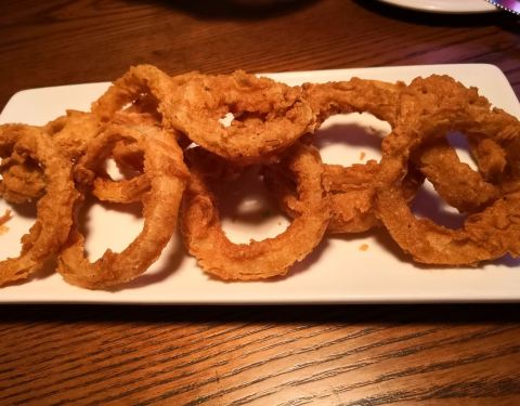 - 洋葱圈,奥尔良鸡肉沙拉,凯撒沙拉,美式碳烧肋排味道不错