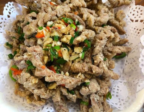 还不错的一家卤煮店呢 要了一份卤煮分量还是很大的里面有肺和肠汤里有醋和蒜汁还不错 一般还是吃不惯的 炸灌肠还是可以的 切的薄厚均匀的 炸的香脆 口感还可以