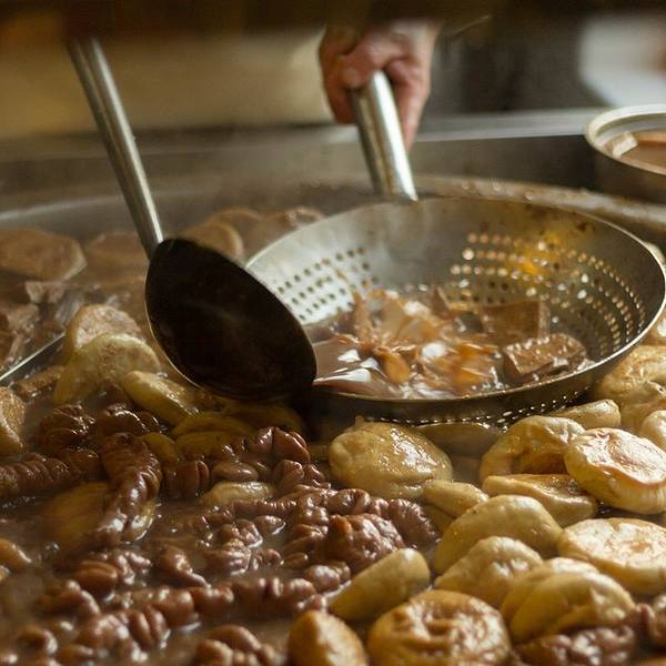 卤煮小肠是人们十分喜爱的一种街头小吃食品。卤煮小肠源自清乾隆年间的一道御膳“苏造肉”。后传入民间经改进演变为卤煮小肠。来自于网络小肠陈第三代传人陈玉田制作的卤煮——“肠肥而不腻,肉烂而不槽,火烧透...
