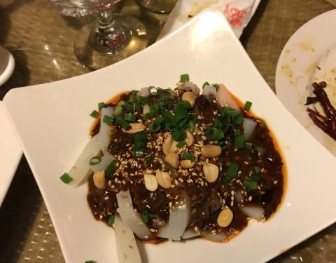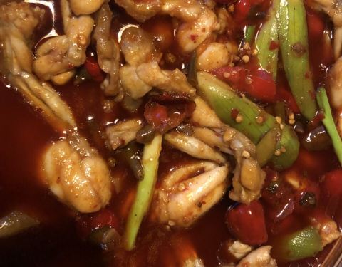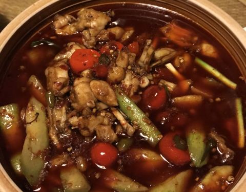 饥寒交迫的时候朋友带路来这。 这个孜香浸鱼味道绝佳,看这像水煮鱼的样子,但是几乎不辣。而且有浓香。 鱼肉鲜美。对于一个很饿的人来说真是人间极品啊。那只烧鸡你们是点不到的,因为是我们自己带的袋装食品。嘘!