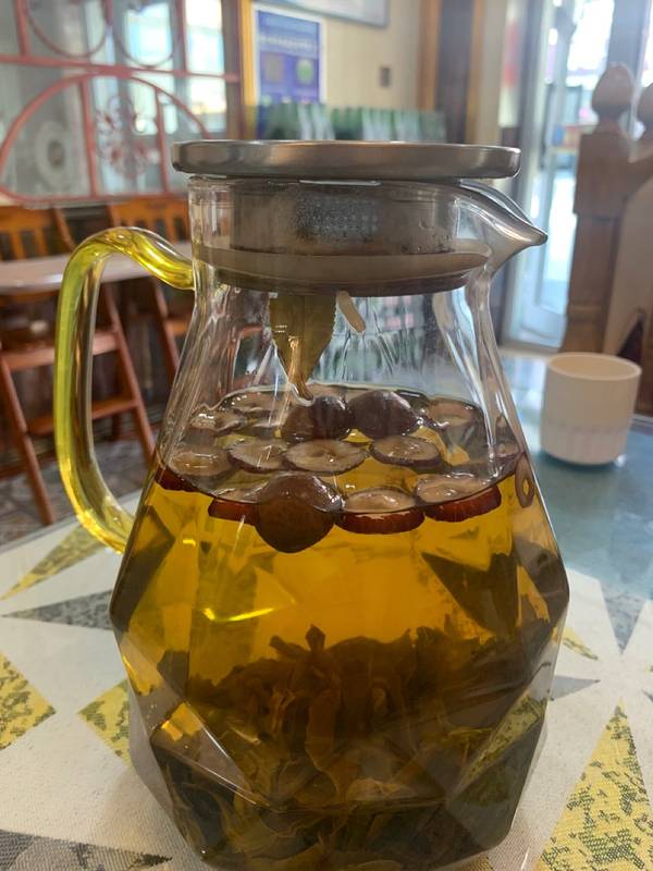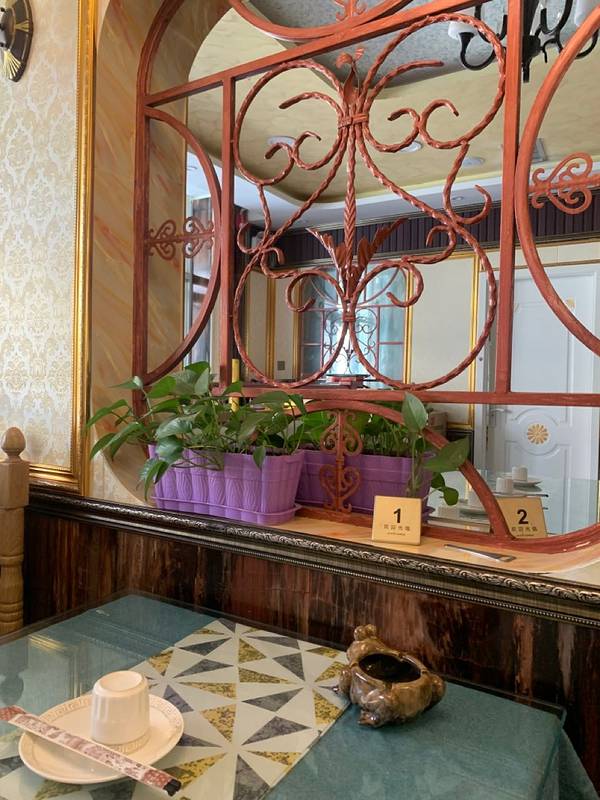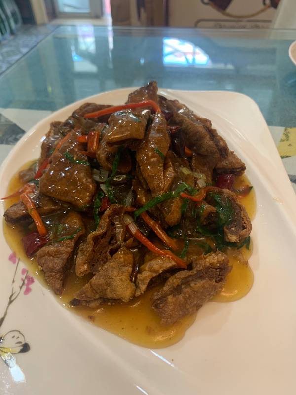 据说是本地人吃饭的地方,避开专为游客吃的餐厅,首选汇鑫国际商贸城。 在前往喀纳斯前,准备在布尔津县饱餐一顿,为了避免吃到游客餐厅,做了很多功课,最终没选择去美食街,而是来到了汇鑫国际商贸城。 虽然已经是晚上6点了,但还没有到新疆的饭点(8点才是),大部分门店都没有客人。我们是下午进店的第一波客人。 店内凸显民族风情的装修风格,非常干净。 两个人点了三个菜:牛肉大杂烩、浇汁夹沙、酸辣土豆丝 牛肉大杂烩:最喜欢的一个菜,里面有在新疆不容易吃到的绿色蔬菜,如:白菜、芹菜,还有鱼豆腐和木耳,勾芡之后吃起来很嫩滑,口感不错。每一坨牛肉都是带筋或者肥肉的,完全不会感到柴,牛肉油脂的醇厚感和香味在嘴中四溢,非常好吃! 浇汁夹沙:似乎是用豆腐皮包着牛肉馅炸制的,有些许脆劲儿,无突出特点; 酸辣土豆丝:不得不赞一下新疆菜品的份量,顶贵州的两盘,切丝均匀,炒得非常脆,只是酸味稍过(这也看个人喜好) 结账下来155元,价格适中,值得推荐!