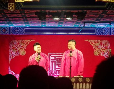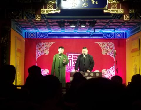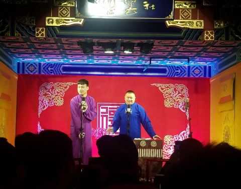 全新装修的剧场,造型庄重典雅,内部装潢极具中国传统文化的气息全新装修的剧场,造型庄重典雅,内部装潢极具中国传统文化的气息。坐在传统的茶楼式剧场里,听一段德云社的传统相声,开怀一笑。