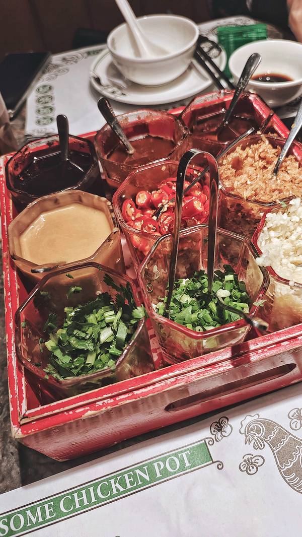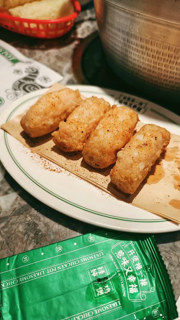 来深圳 ,打边炉是一定要吃的~而禄婶鸡煲,又是打边炉的yyds~夜景看得差不多了,直奔这里~晚上八点多过来,等了一小会儿便有了座位~装潢很有年代感,有种怀旧的港风~ 「金牌花胶鸡煲」和「九宫格酱料」是最最特色的啦,点就对了~花胶汤底要慢慢熬,熬的越久越香浓~「禄婶自制油条酿虾滑」「即炸紫菜响铃拼黄金响铃」「紫菜墨鱼滑」「鲜芒果布丁」也都超级棒,除了小贵没毛病~!