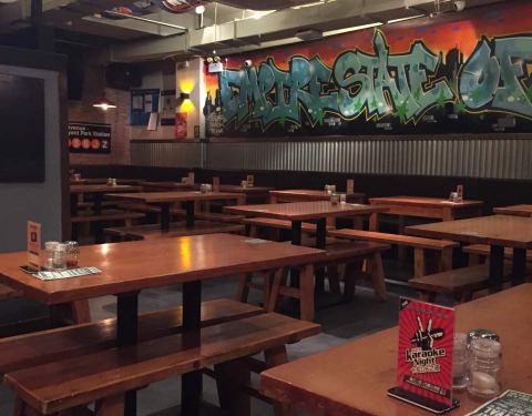 位于地下室,进门就是钢制楼梯,下来空间比较宽敞,灯光比较暗。大屏幕电视和音乐不是一个节目,适应了半天。整体感觉比较时尚,服务员穿着短袖运动衫,比较精干。也很主动提供帮助。菜品披萨比较干,要配饮料比...位于地下室,进门就是钢制楼梯,下来空间比较宽敞,灯光比较暗。大屏幕电视和音乐不是一个节目,适应了半天。整体感觉比较时尚,服务员穿着短袖运动衫,比较精干。也很主动提供帮助。菜品披萨比较干,要配饮料比较好,通心粉感觉比较好。 2017-03-17 00:07来自携程 网友