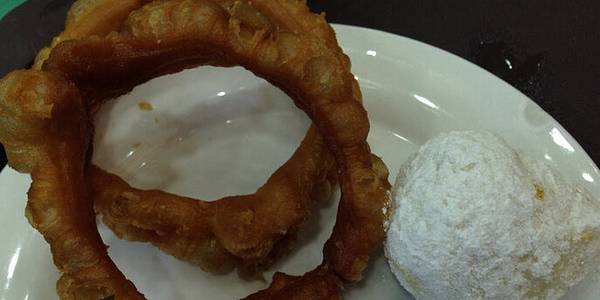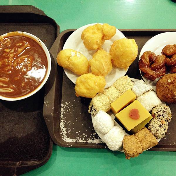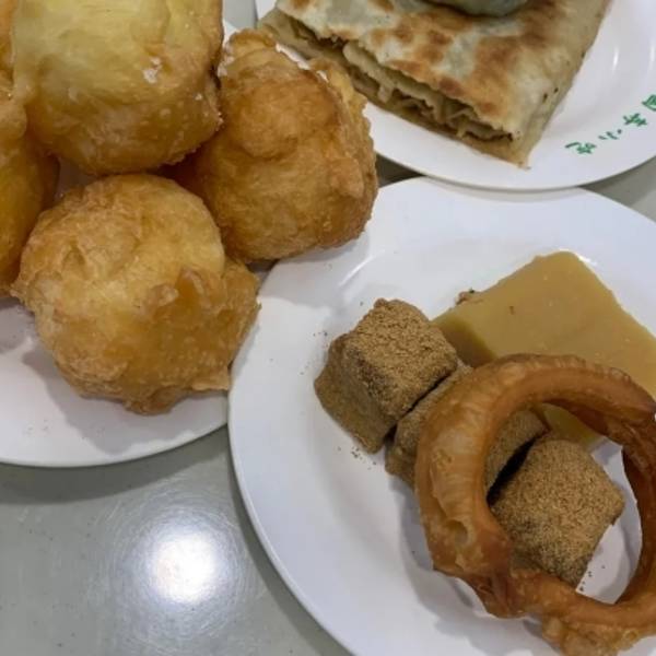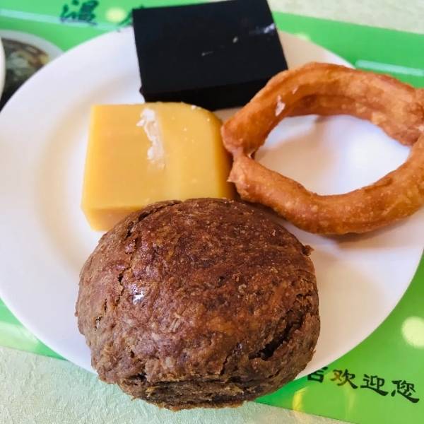 - 叫了两碗炸豆腐汤,超级好吃,还有驴打滚,奶油炸糕,甜麻花,糖环,烧饼,豆汁(朋友推荐的)。都好好吃