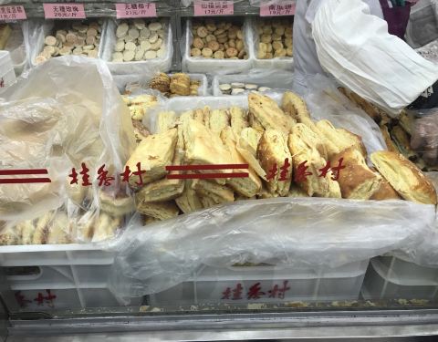 在单位附近,一般周五去采购,周末在家享用。桂香村整体都比另一个村强很多,各种点心都很酥软,更适合老人。 特别喜欢桂香村的玫瑰花饼,比马路对面富华的还好吃,价格也便宜,起酥皮颜色漂亮、口感更酥软,玫瑰花馅不齁甜。 各种果酱馅儿的糕点也很喜欢,当然,如果甜度也非常高,果酱盒子的面饼很软,果酱卷的蛋糕层也很湿润。 油炒面里的坚果很多,味道浓郁。还有很多很多的糕点推荐,比如大起酥、司康等等,总之~就是非常好吃。很可惜的就是好久没买到奶油蛋卷了……