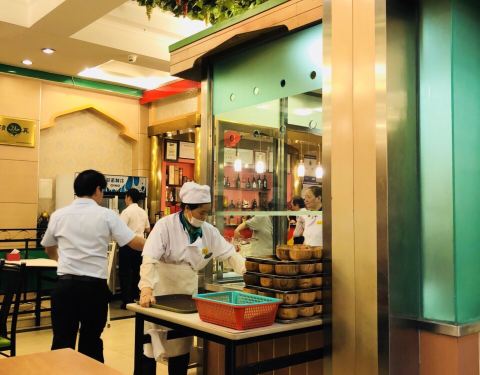 点菜分两个部分,一个是大厅中间区域是做好的菜品,有一个透明的展柜,自己去选,烤包子就在里面,刚出锅的,另外就是菜单服务员帮忙点菜。服务员都是新疆女生,都很好看,眼镜大大的,服务态度很好。