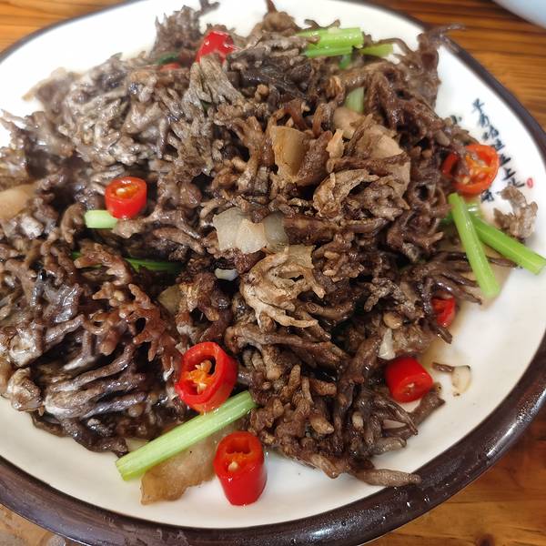 炒鸡爪菇~没吃过所以尝试一下~口感很脆.也挺香的~就是后面有吃到几口沙~总的来说还是可以的