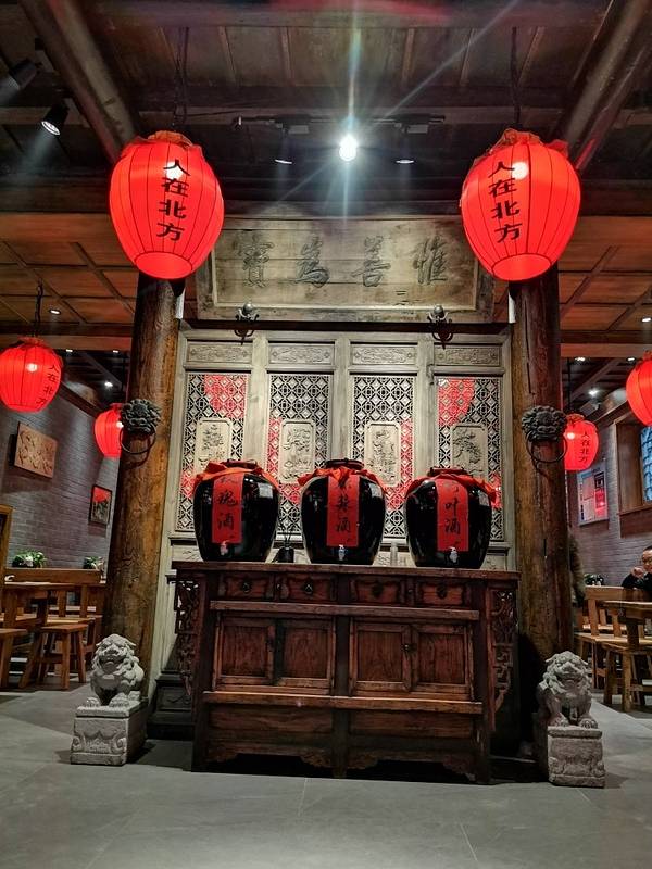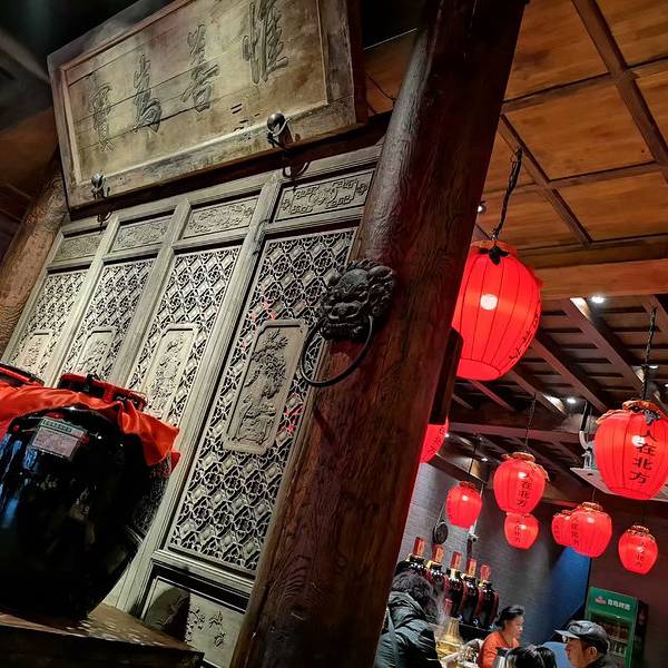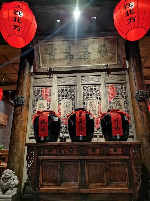 平遥古城里数一数二的饭店,据说开业没有一年就被挤爆,才扩大经营到了现在的店址南大街。店面看着不大,其实里面别有洞天,一进门的木质影壁,看着有些年代了。最吸引人的就是酒坛子形状的大红灯笼,有点古代酒...