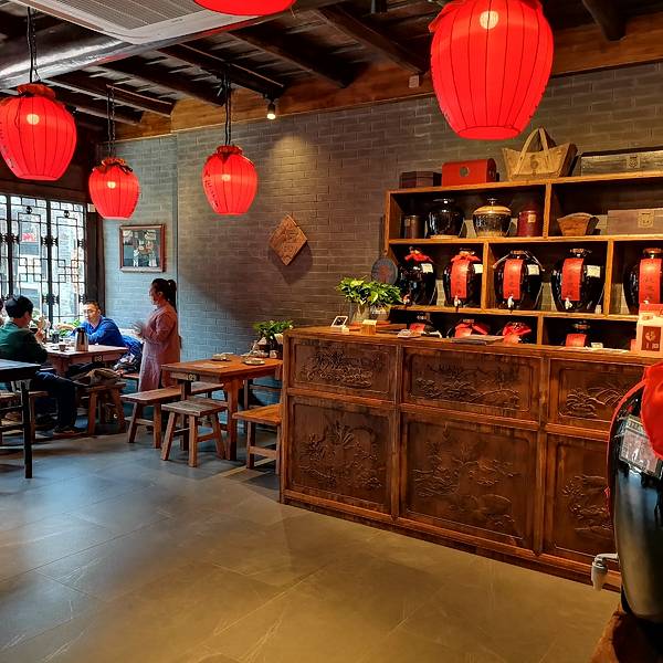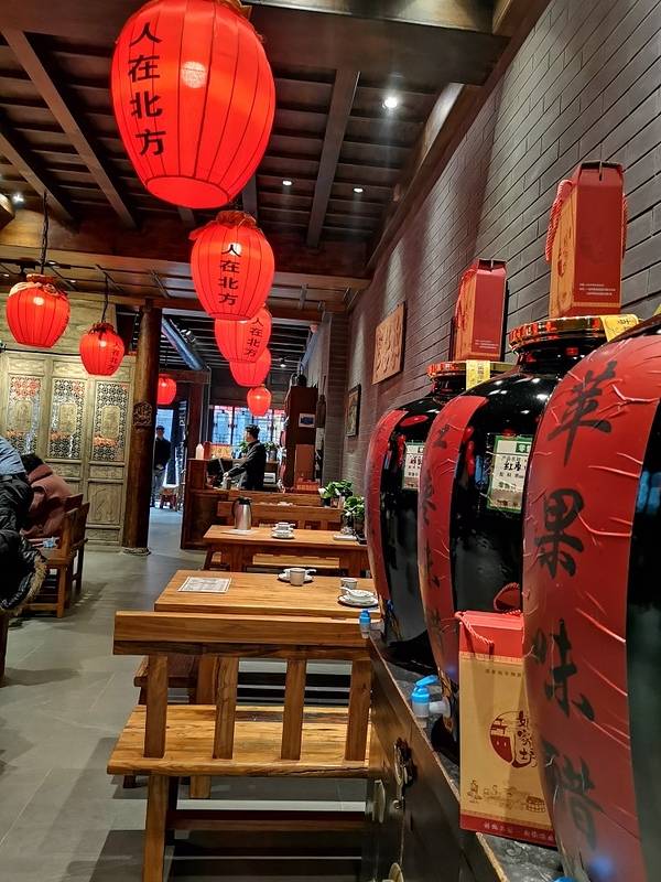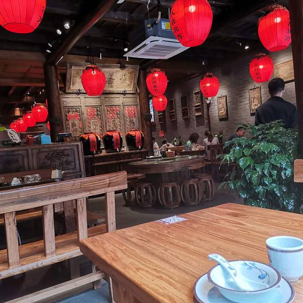 饭菜服务都很在线,推荐一定要吃香醋炒鸡蛋,吃过最好吃的鸡蛋,没有之一。说是一家酒馆,真的不假,...很不错的一个馆子,看起来像小馆,进门以后发现别有洞天,装修得像是古代的酒馆,挂着酒坛子灯笼,氛围十足。