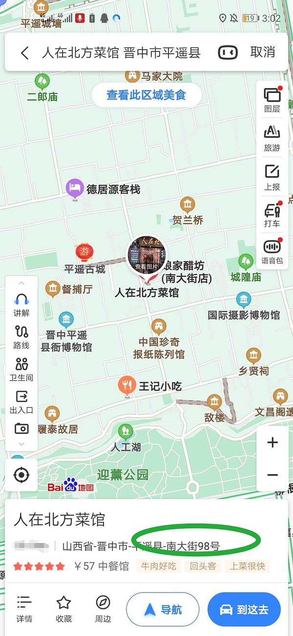 刚搬迁了新地址的餐馆,人在北方菜馆,之前的地址都是城隍庙街8号,现在已经搬到了南大街98号了,百度地图和高德地图都已经更新信息了。