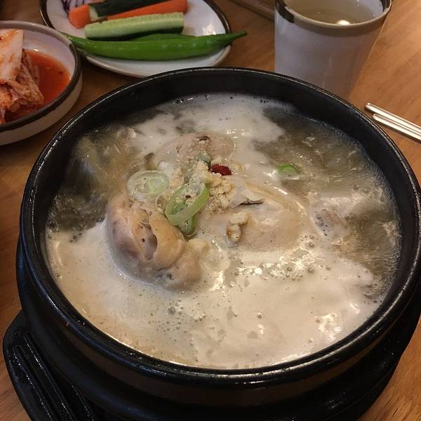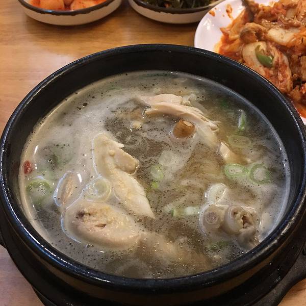 芝湖参鸡汤,望京这边本来韩国人就多,这家算是味道正宗的鸡汤料理,位置在望京西园,离地铁站还是比较远的,因为住附近的酒店步行来吃的。人均一餐消费60元左右,需要说的是参鸡汤真的不错,味道不咸,不是用味精勾兑出来的味道,好吃推荐。额外点了一个辣白菜五花肉,口感太淡而且汤汤水水的不太好吃,推荐度比较低。鸡汤分为汉方、韩式以及创新口味,我吃的汉方有些中药的味道,冬天吃完后身体都暖暖的。确实不错。 餐厅内有榻榻米区和座位区,服务意识一般,店员喜欢凑在一起闲聊。刚上来的鸡肉简单帮忙搬一下也不会理。还是自己动手吧,综合5分推荐,住在附近可以专门来吃。熟悉韩国料理的亲们都知道,这些小菜是“送”的,其实中间那份海带是我们买的,这一份要18元,感觉分量太少了,味道都还不错。参鸡汤一份66元,口味不同价格有差别。鸡肉很嫩,糯米也很香。香料味道比较淡, 但不是味道,鸡精勾兑出来的味道,吃起来一点都不咸,非常鲜美冬天来一碗参鸡汤那体验真的是很不错,鸡肉本身觉得味道淡,可以 加一些胡椒盐,这样口感会好不少辣白菜五花肉,汤汁太多,吃起来口感不太入味,这一份还要36元 虽然不贵,但是不大好吃,推荐度低