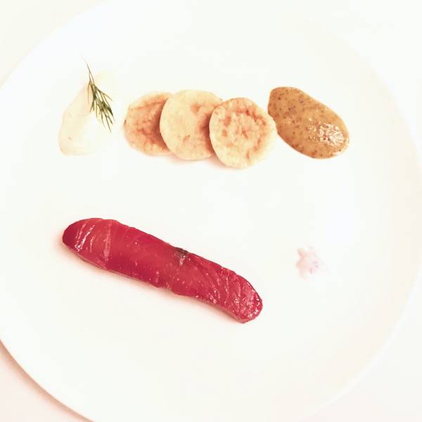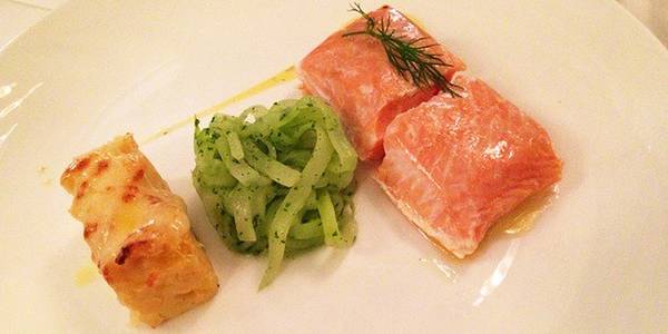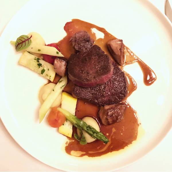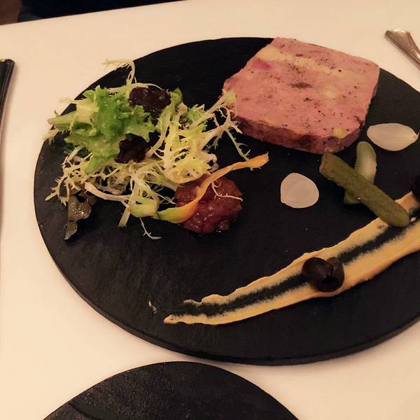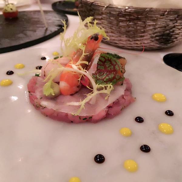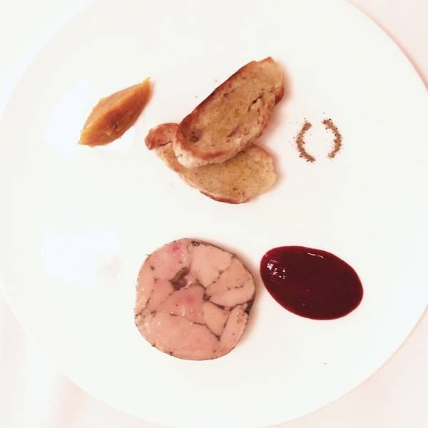 「法式传统鹅肝」coldstarter,官方名字是鹅肝卷什么的,通常我都吃的鹅肝批,这个卷也挺好吃的,入口即化,比起煎鹅肝,更突然了鲜甜味。