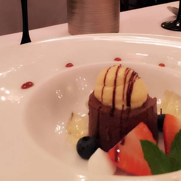 分量也相对前一道更足一些巧克力中和了草莓的酸最上层是冰淇淋【餐厅服务】