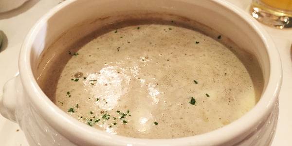 「法式野菌浓汤」hotstarter,超好喝!想吹爆它!虽然服务员很随便地从壶里倒出来,但实际上鲜得不得了!浓浓的汤汁,黑松露和其他菌类一起有奇妙的香味出来。