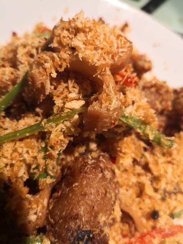 玉华台饭庄可是西城区名气响当当的国营老饭馆儿,好多西城孩子都是从小吃到大,小时候家里聚餐也爱来这儿~ 店里还总有爷爷奶奶辈儿的过来吃饭,显然已经成为附近居民的食堂之一招牌的小窝头是真的抢手~ 下午两点【红糖彩豆窝头】就已经卖光了嘤...【枣香窝头】也所剩无几,被蒜蒜迅速抢下!窝头口味特别多,还有黑芝麻窝头、橄榄菜窝头、茴香菜窝头、胡萝卜窝头...这里招牌的【响油鳝糊】还是值得一试。这道菜可是淮扬菜系分支:苏邦菜中的传统名菜哟~ 这不,还没上桌,蒜香味儿已经先飘过来了