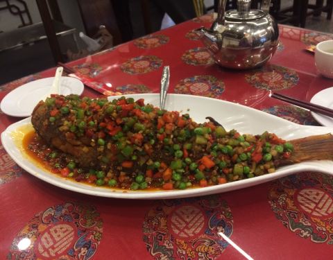 很多年的老店了,里面不大, 传统老字号,淮扬菜,排了半天队吃了吃, 干烧黄鱼真心赞。
