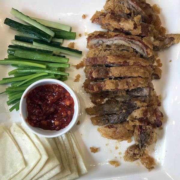 - ...面现片,一定要趁热吃,鸭皮才能脆香可口,相比全聚德烤鸭,还是蛮实惠的,味道挺不错,服务态度也好