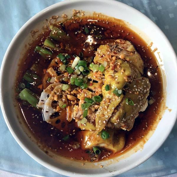 甜面酱配上烤鸭,切的肉片,再配上葱丝,香 2018-06-13 05:38来自携程 网友
