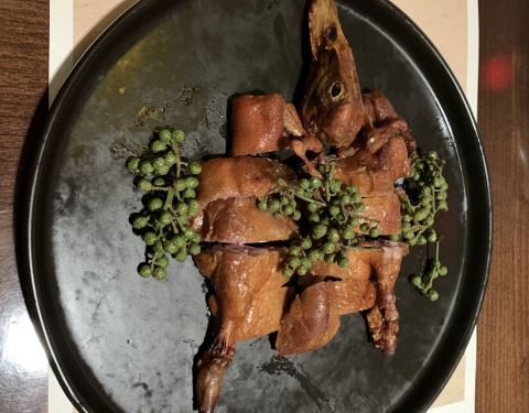 彩海的鲜椒小鸭!作为真·土产,花椒在中国古代入菜甚早,《诗经》《楚辞》已颇有好评,而胡椒直到唐代、辣椒直到明代才有用。“竹叶花椒”早在马王堆出土香囊里已见,近年流行将其新鲜果序入菜(所以叫“藤椒”),直观提示那特殊的麻感原是植物的防御机制