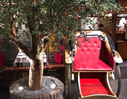 整体环境很“老北京”。布景挺有意思的,还有人力车,好多人还坐上拍照……一侧是沙发两人座,中间是小桌,可以坐6人,面积挺大的。餐具很干净,看着很舒服~店内服务真的很好,开门进入就是热情的欢迎声,每一名...