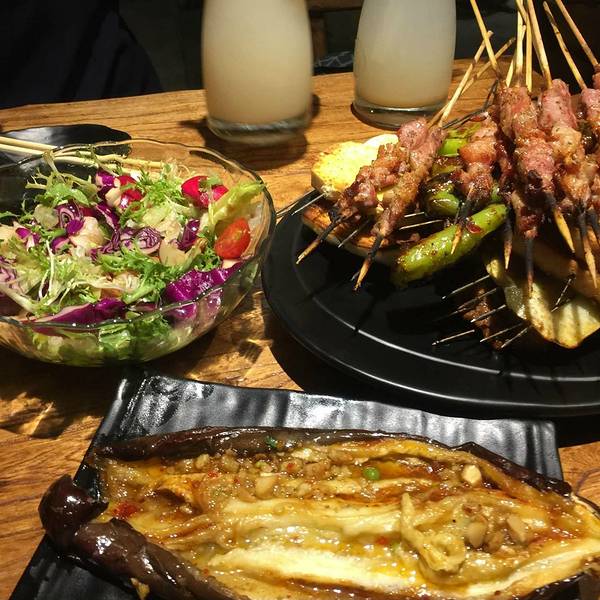 距离公司很近,聚点是我们经常光顾的地方,讲真价格不是很便宜。个人建议来这吃还是要团购,团券会比较划算。按原价结算他们家真心贵了。 #烤串#:按份来卖,一份5串,量比较少,不过味道还不错。 #鸡翅#:味道一般,但是盖不住我们都喜欢吃鸡翅,所以每次必点。 #烤面包#:同事特别钟情于面包片,很香甜,推荐。 #烤尖椒#:每次必点,辣味够足,喜欢吃辣的同学可以尝试。 #烤茄子#:没什么特别的,一般。 #大拌菜#:中规中矩,分量还算大,三个人吃足够了。 #炒方便面#:唯一一次点,估计是吃了太多的烤串的原因,吃不下太多面,吃的时候有些凉了,所以并没感觉很好吃,只觉得有点咸~ #气泡水饮料#:点了荔枝和芒果味的,其实没什么特色,个人不是很喜欢,水是用气泡机打出来的,味道不可恭维。但是如果非要我选一个出来,还是荔枝味的比较好一点。 【环境】:装修风格现代化,大厅明亮整洁,两层,厕所安排在二楼。店内没有wifi,没有免费停车位。 【交通】:公交635路、75路、115路到东直门内站下车,沿着东直门内大街走90米,左转穿过马路往回走,差不多100米到终点 地铁:2号线到东直门站A口出,沿着东直门桥走200多米,过人行道继续走20多米,然后沿着东直门内大街走200多米即到。