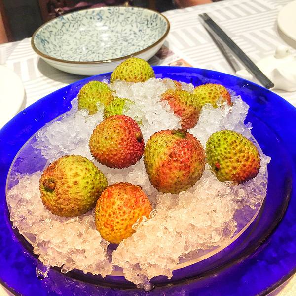 - 花生酥脆葱段入味,香、辣、鲜、嫩、脆,特有的糊辣味带有微微荔枝口感。餐前水果是比较甜的荔枝
