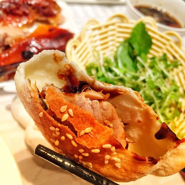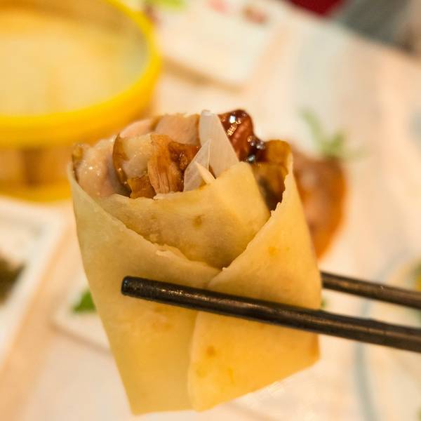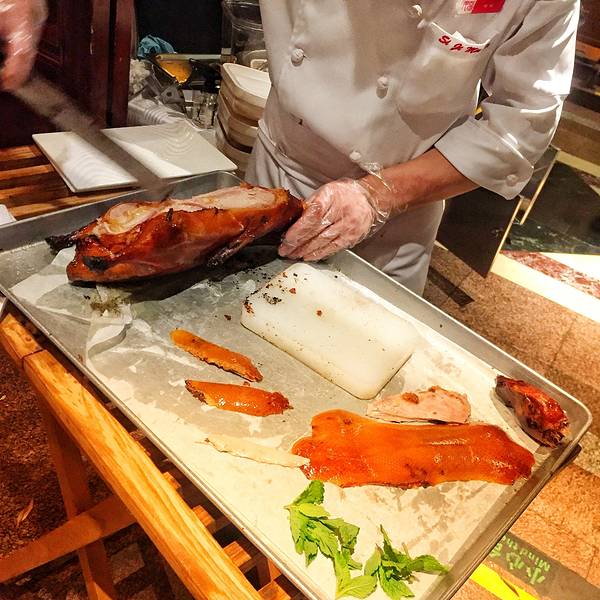吃烤鸭会有服务员专门给演示传统吃饭和创新吃法,不过我还是习惯首先吃鸭皮蘸白糖,入口即化,满口香气,不死命吃的话不会被腻到;