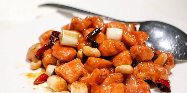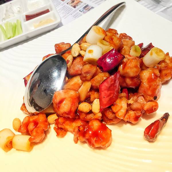 「宫保鸡丁」鸡肉很大一块,醋放太多,酸味占了上风,吃过一口就不太想动筷子了。