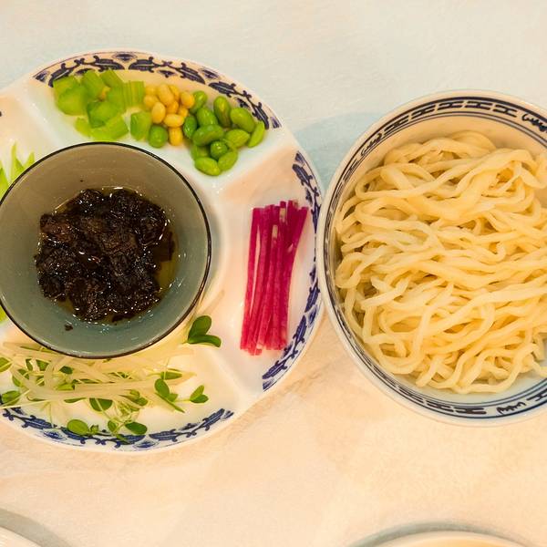 为了吃一口北京烤鸭,我们从5点半排队到8点才等到位。不过也没有辜负我们的等待,烤鸭很香,配上面皮和小料,半只完全不够我们吃。但是烤鸭单吃皮虽然入口即化,但稍微有点苦,听服务员说会有果木香味,我们也没有品出来。杂酱面的酱料很香,面条很筋道。看了很多攻略都表示四季民福的豌豆黄好吃,但不是很合我们的口味。