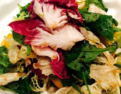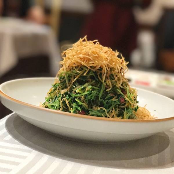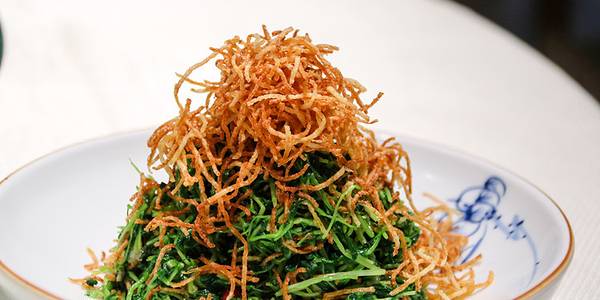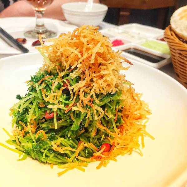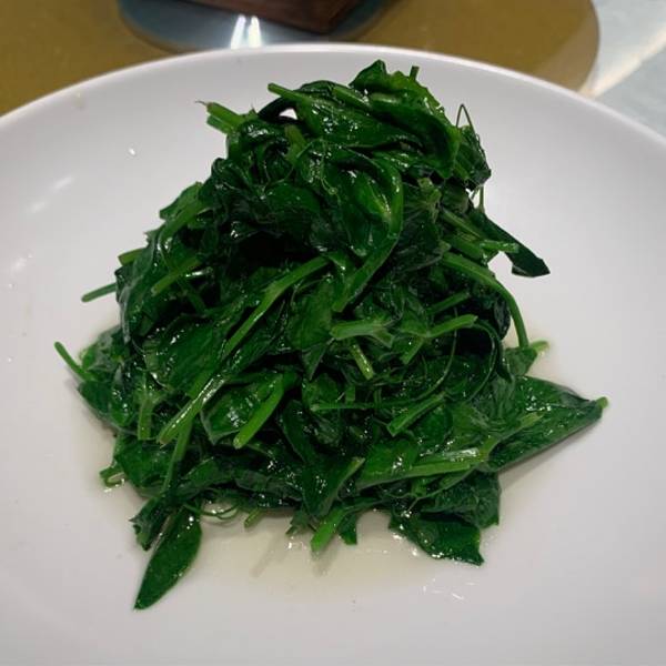 「豌豆尖」很老,毕竟不是这个季节的食物,味道倒还算不错。豌豆尖中还夹杂了一点香菜,我还以为是什么新鲜吃法,朋友笑说可能是菜放在一起洗混了吧。