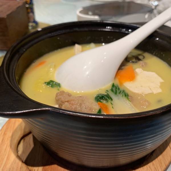 「京味小酥肉」荤素搭配的汤菜还算不错,娃娃菜、胡萝卜、豆腐、木耳配上酥肉适合全年龄段的人食用。值得注意的是,本道菜放了大量胡椒,朋友很喜欢喝了两大碗。酥肉是裹上面糊直接下锅煮的,要是炸过再煮感觉会更好。
