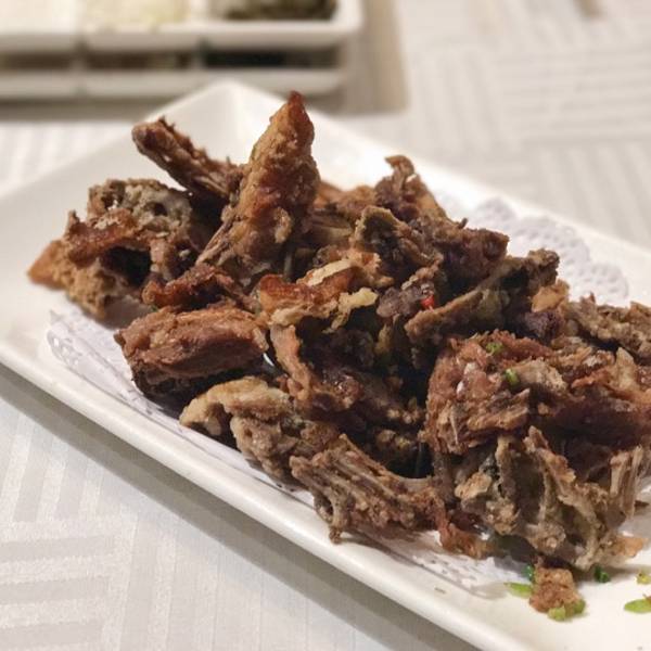 「椒盐鸭架」是这两年吃过最好的,加20元加工费就可以吃到,鸭架汤也不错;杏仁豆腐、豌豆苗、赠送的冰镇🍇都蛮不错。