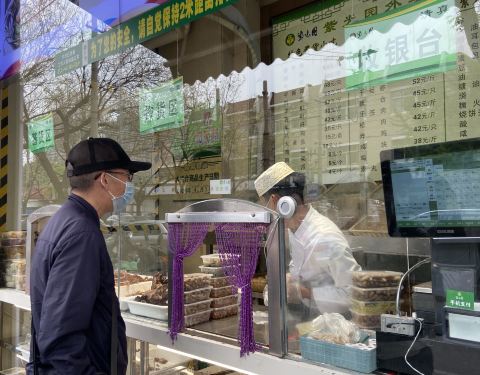 清真的餐厅,有外卖窗口,价格很实惠,最有名的炒疙瘩味道很好,里面还有虾仁,服务很热情,烤鸭95元一套,可以外卖,很方便。