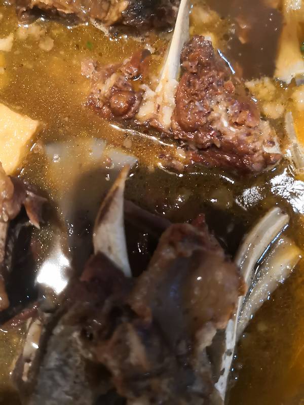 我们3人点了一大锅。肉还挺多的,而且块块都带骨髓。汤的味道很香,吃肉还可以,最后涮菜就有点咸了。最后来份抻面,用那个肉汤一煮,别提多香了。