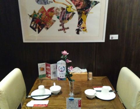 这家餐厅挨着大董总店,十条桥西南角南新仓文化区,附近的餐厅普遍很有特色,天下盐算很一般,店内主要经营川渝菜系。店员服务态度比较差,对菜品的询问不给解释,满脸不耐烦,上菜速度非常慢,主食米饭催了最少4次才上。川味担担面我们都忘了,直到临走才给上,打包回家都凝成一坨了。 菜品卖相不好,食物的分量也比较少,点的毛血旺看起来就是乱炖,黑乎乎一盆,毛肚太脆了,还有午餐肉品质很差,胶质很多的感觉不好嚼还78一份好贵;王献排骨是招牌,轮根22元一个卖,挂文房特制笔架上,看起来很有意境,不过是那种半筋排骨肉很少,味道很咸类似风干肉;鸡丝凉面和赖汤圆还可以,这俩比较地道,性价比挺低。